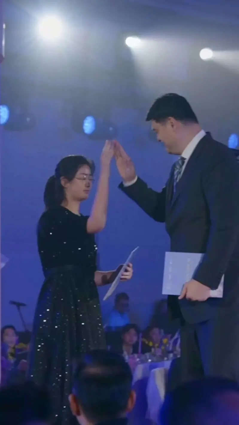 姚沁蕾當晚穿著黑色亮片裙,沒化妝也沒特意做髮型,看起來非常青春,姚明上台講話時,姚沁蕾以流利英語完成口譯,表現沈穩自信,贏得在場嘉賓稱讚。