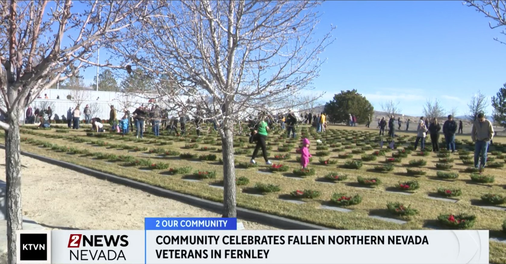 記者晨楓報導, 「美國花圈行動」(Wreaths Across America)年度儀式重返內華達州,將社區的力量凝聚在一起,共同紀念和表彰國家軍事英雄們的奉獻與犧牲。這項全國性活動旨在「銘記逝者、尊敬現役與退伍軍人,並教育下一代自由的價值」。 這項感人至深的年度儀式於週六(13日)上午9時,在內華達州南、北兩地的退伍軍人公墓同步舉行。南部場地設於博爾德城(Boulder City)的