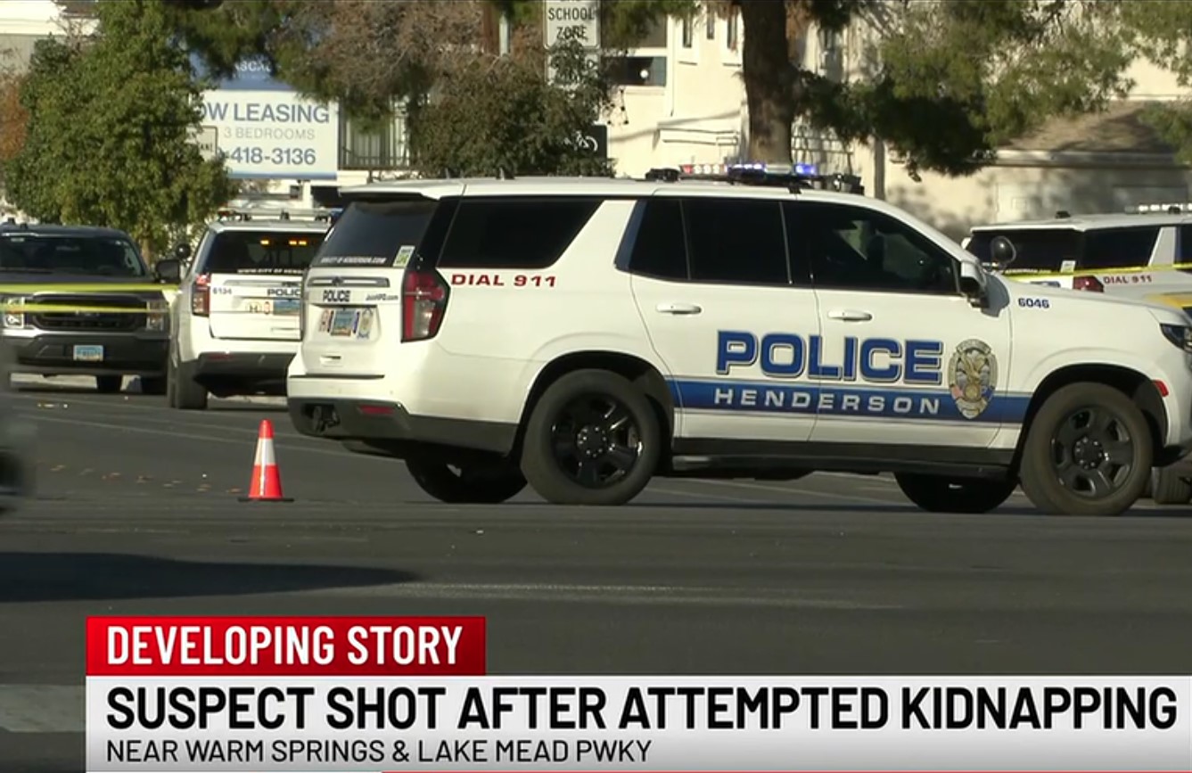 記者晨楓報導, 亨德森市(Henderson)警方於週日(14日)上午發佈消息證實,警方在處理一宗企圖綁架案件時,向一名涉嫌開車衝撞警員的男子開槍射擊。 亨德森警察局表示,事件發生在上午9時45分左右,地點位於中央街(Center Street)的1000號街區,鄰近東米德湖大道(East Lake Mead Parkway)與東溫泉路(East Warm Springs Road)。警方接獲報案,指稱一名男子正企圖綁架一名女子,並試