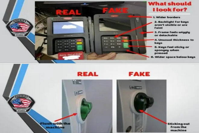 特勤局指出,不法分子將盜刷設備安裝在ATM、加油泵或銷售點 (POS) 終端內或終端上,以盜取客戶插卡的資料。盜刷設備還能記錄持卡人輸入的PIN 碼。然後,不法分子用竊取的資料制作假銀行卡,詐騙者持假卡就能從受害者的帳戶中提取資金或者購物。