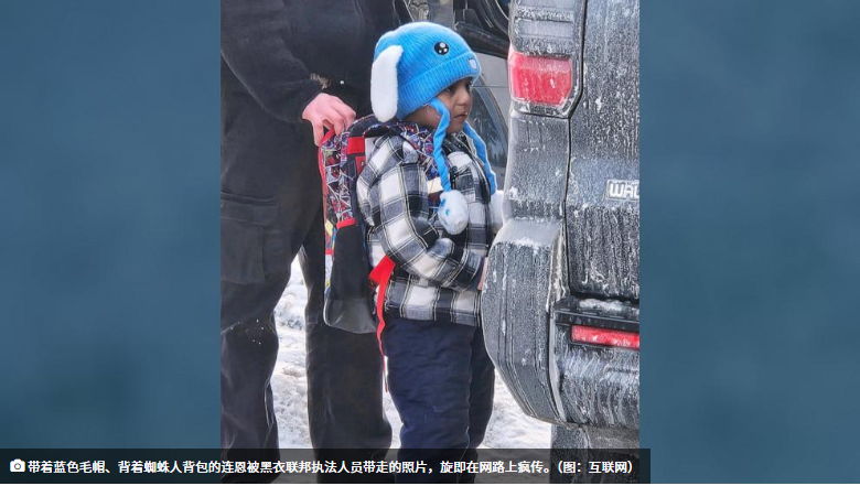 帶著藍色毛帽、揹著蜘蛛人背包的連恩被黑衣聯邦執法人員帶走的照片,旋即在網路上瘋傳。