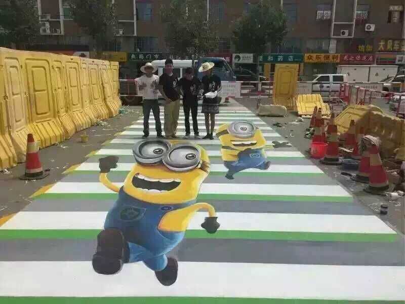中國大陸江蘇宿遷多個路段開始繪制「3D斑馬線」,小小兵、熊大等卡通人物突然躍上街頭。但這項「創新」之舉並未獲得太多掌聲,許多民眾抱怨說,被搞得眼花撩亂。