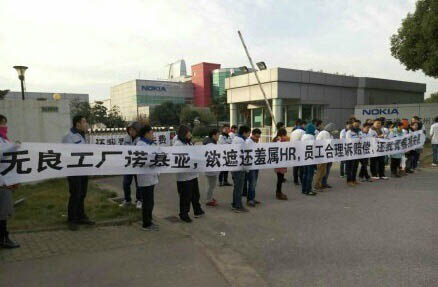 中國經營報報導,12月初有幾十名諾基亞員工聚集在蘇州廠門口,拉著「還我青春損失費」的布條,而諾基亞今年初已關閉了東莞廠和北京廠。