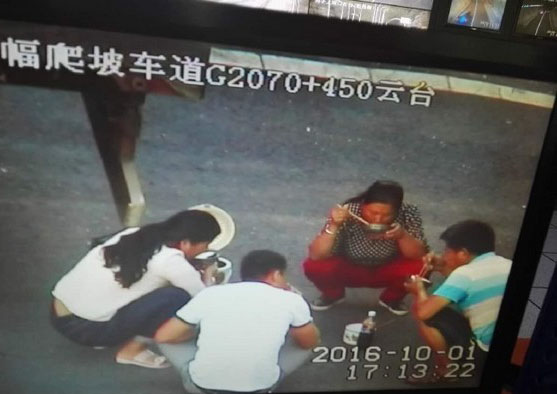 雅西高速公路交警從監控畫面查看道路情況時,發現在雅西段2070公里650公尺處的應急車道上停著兩輛貨車。交警原以為是貨車故障,但隨即從監視器畫面查看發現,兩輛貨車一前一後停在車道上,兩男兩女分別從貨車上下來,搬下鍋碗瓢盆,開始搭鍋煮起飯。