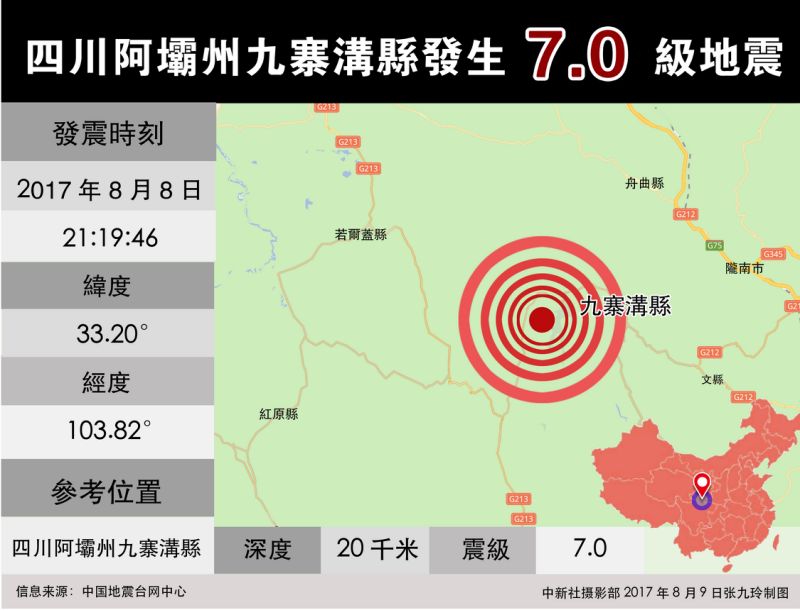 「人民日報」報導,這次地震造成9人死亡,包括6名遊客,另外有超過130人受傷。