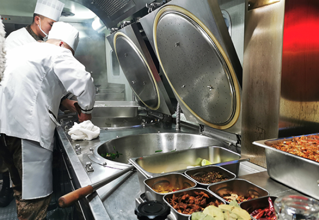 報導稱,中國的野戰炊事車可加工米飯、麵食、炒菜和燉菜等食品,五個人在一個小時內就能提供300人份的飯菜。一名炊事車上的伙房兵說,「這個車是野外為官兵提供熱菜熱飯的『神器』,對提升戰鬥力有不小的幫助。」
