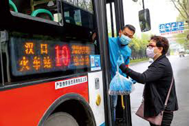 武漢多線公車25日復駛,乘客須用手機掃碼實名登記上車。