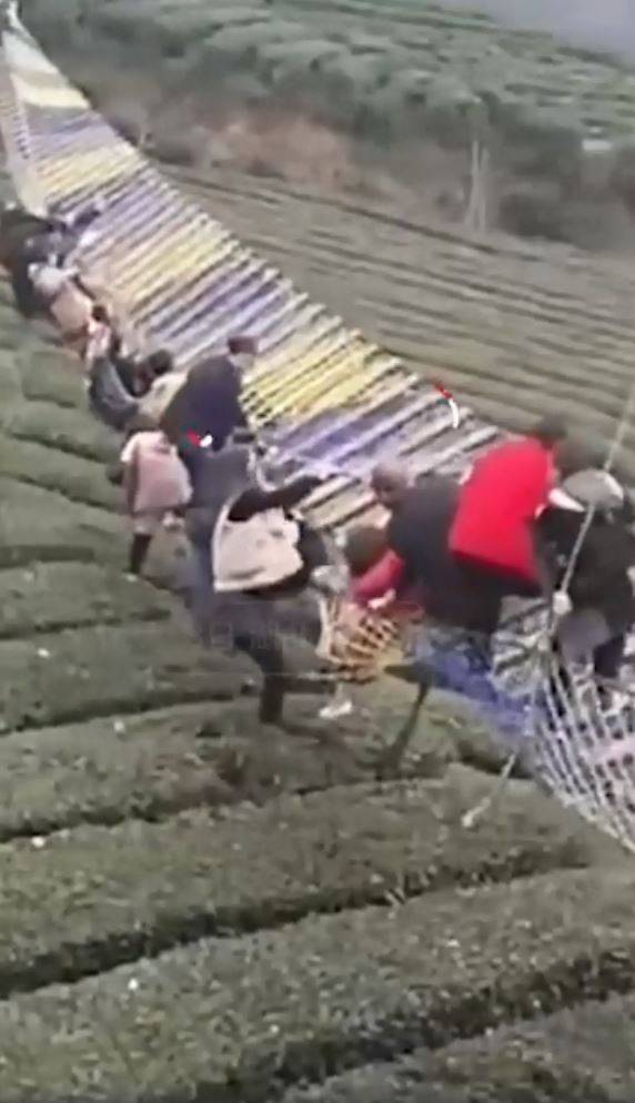 這段在微博瘋傳的影片顯示,橋麵上許多遊客直接墜橋掉落茶園,所幸與地麵距離不高,也有茶樹作為緩衝,官方宣稱無人傷亡,且澄清該座吊橋並非官方設置的景區,隻是1處免費對外開放的公共休閒設施,目前已採取安全措施,用繩索加以固定橋麵,以防再有意外發生。