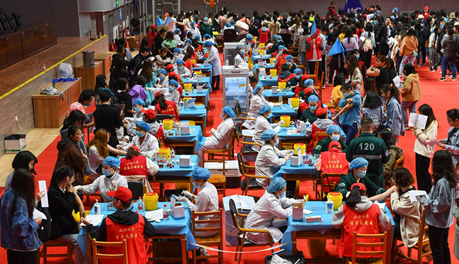 中國近日加快接種疫苗,圖為山西大學師生被安排