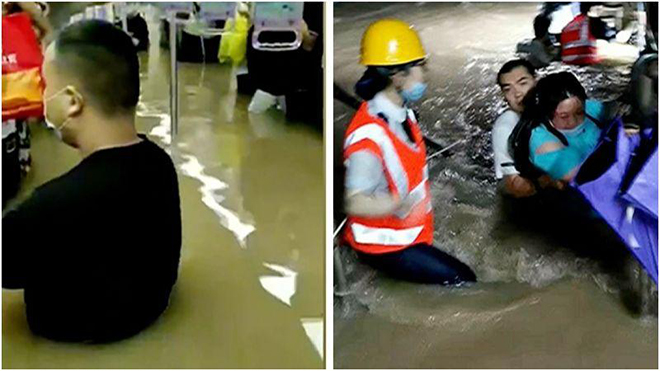 暴雨導致鄭州市街道宛如黃河,淹水至少一層樓高,許多區域電力、通訊中斷,醫院醫療儀器停擺,全市幾乎癱瘓,撤離約廿萬居民避難。