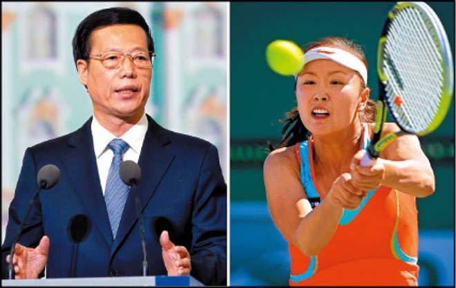 中國網球女將彭帥(右)自曝與國務院前副總理張高麗(左)不倫戀。