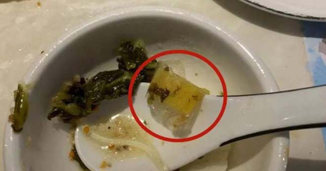 廣東省1名陳姓女子在餐廳吃到染血OK繃,讓網友直呼噁心。