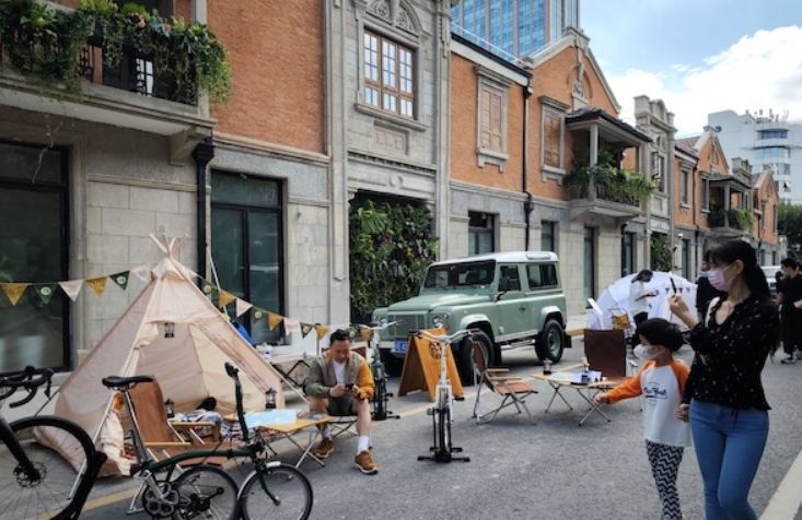 石庫門、復古車、露營帳篷……今天上午,隨著茂名北路變身周末限時步行街,一場潮流市集也在張園門前亮相,市民們或駐足體驗,或穿行其中,或舉起手機拍攝石庫門下的潮人潮范兒,享受秋日周末的戶外悠閑。