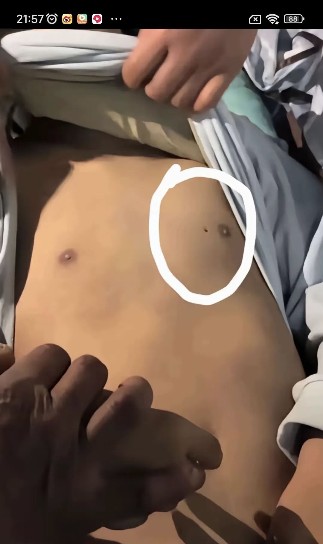 直到數小時後,朱姓男學生的父母才在當地警方陪同下前往醫院太平間,見到孩子的遺體。但家長赫然發現,死者不但嘴角殘留血跡,胸口更有一處釘子大小、有如被釘子戳過的傷口,且腰部也出現一大片紫黑色瘀青。而家長拍下的照片,也一度在網路上快速流傳。