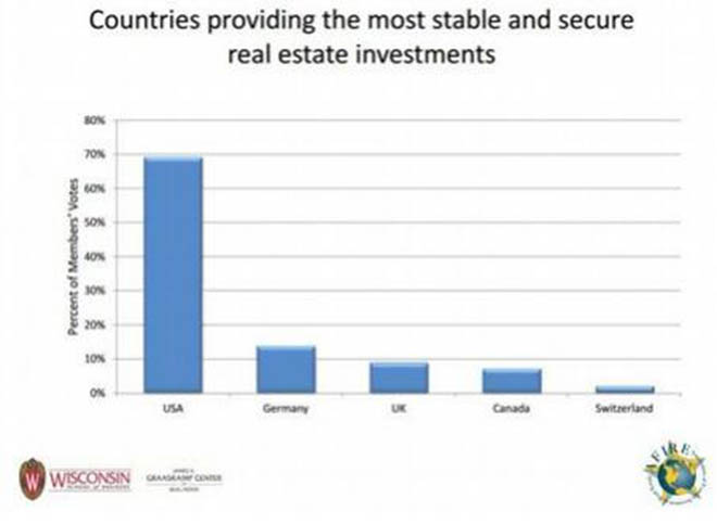 2016年公認的房地產投資穩定性和安全性最高的國家依次為美國,德國,英國,加拿大,澳大利亞,基本與去年持平。