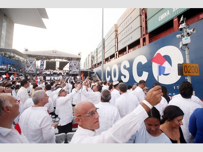 路透社報導,中國大陸籍貨櫃船「巴拿馬輪」(Cosco Shipping Panama)上午7時50分(臺北時間上午8時50分)進入大西洋清水(Agua Clara)船閘,是穿越這條80.45公里水道的首艘船隻。