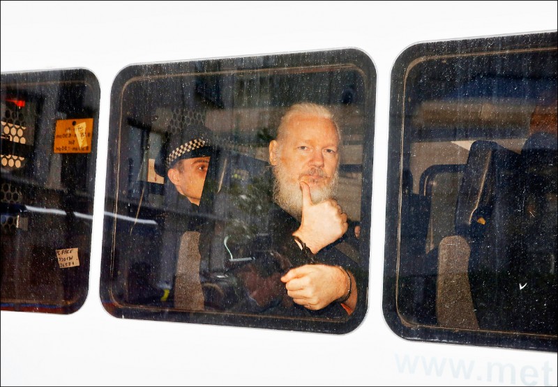 【綜合報導】英國警方十一日在厄瓜多政府撤銷對維基解密網站創辦人阿山吉(Julian Assange)的庇護後,依據美國政府對他起訴的「共謀入侵政府電腦」罪名,在厄瓜多駐英大使邀請下,進入阿山吉躲藏近七年的倫敦駐厄瓜多大使館,逮捕滿頭白髮的阿山吉,將他拖出使館送上警車。阿山吉被捕時情緒失控,不斷高喊「這是非法的,我不離開」。他隨後出庭,法官裁定他違反二○一二年保釋規定,面臨最高一年的刑期。他五月二日也將依美國引渡要求出席受審。