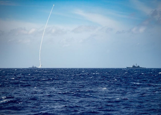 美國第七艦隊於臉書發布消息指出,美軍「伯克級」驅逐艦貝瑞號(USS Barry DDG-52)在南海進行實彈操演時,發射一枚飛彈,並執行作戰資訊指揮中心的操練。