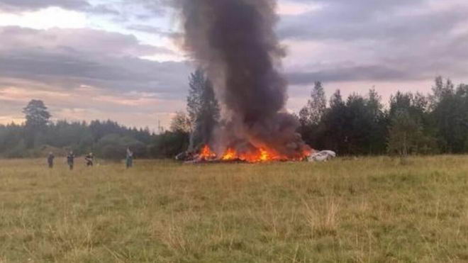 俄羅斯緊急事務官員同日稱,一架從莫斯科飛往聖彼德堡的商務專機墜毀,機上7名乘客及3名機組人員全部喪生。俄羅斯聯邦航空署公佈的死者名單包括普裡戈津和瓦格納集團軍事指揮官德米特裡·烏特金(Dmitry Utkin)。