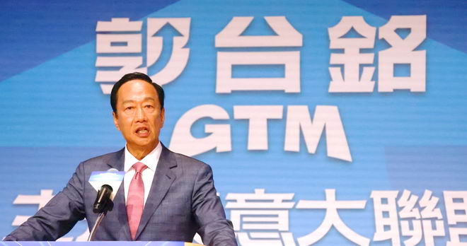 他批評,民進黨過去7年執政期間,對外把臺灣帶向戰爭的危險,對內無法解決臺灣產業發展與人民生活的困境。郭台銘不斷重申應“下架民進黨”。