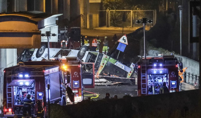 當地媒體skytg24報導,由於尚未確定的原因,這輛巴士衝破了立交橋的一堵牆,掉在倉庫和下面梅斯特車站的軌道之間。