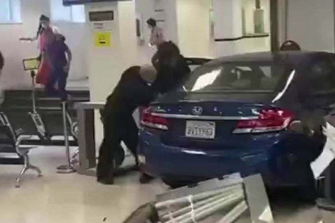 現場情況看來,這輛車幾乎嵌入了Geary大街上的中國領事館簽證處並停在大樓內。 簽證處的入口處有一個簡單的英文和中文標誌。