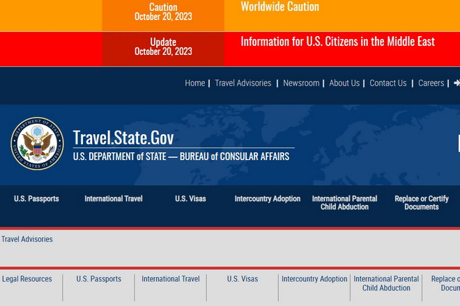 美國公民全球旅行警告、美國公民在中東的警告資訊(2023年10月19日更新):