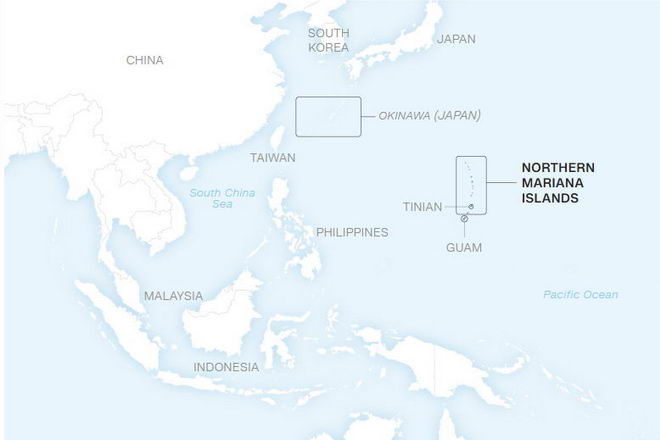 Tinian島是北馬里安納群島(Mariana Islands)聯邦的一部分,是美國在太平洋上的領土,位於太平洋夏威夷以西約3700英里處。只有大約3000人居住在這個39平方英里的島上。