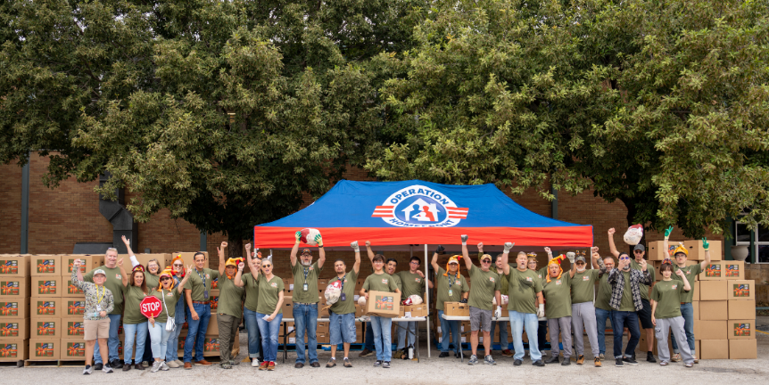 作為其年度「軍人節日餐食計畫」(Holiday Meals for Military program)的一部分,「Operation Homefront」向225個事先註冊的軍人家庭派發了節日餐食禮包。每一個禮包都包含準備一頓傳統節日大餐所需的所有食材,同時還附有禮品卡,以幫助這些家庭緩解日常預算壓力。