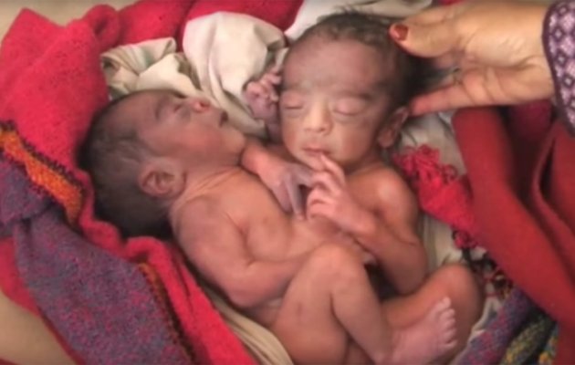 25歲印度婦人德維(Guddo Devi)在當地時間週六產下雙胞胎連體嬰,奇特的是嬰兒有2頭、4手、2腳,家人表示會將嬰兒扶養長大,希望找更大的醫院幫嬰兒進行分割手術,但醫界對於嬰兒能否存活並不樂觀。