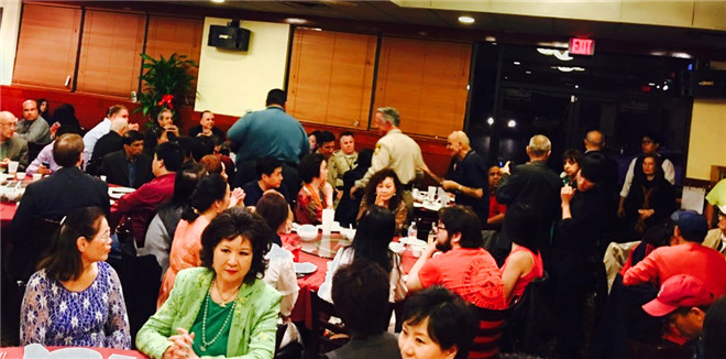 3月2號(星期三)晚上六點,亞美集團(AAG )在本地中餐館席開十多桌,既三月一日的星期二警民安全周開會後,亞美集團代表亞裔歡迎新警長和全體服務亞裔社區的警察人員,警民共歡聚一堂,社區的各族裔代表皆出席此一盛會。