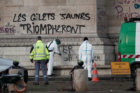 負責監督清理作業的巴黎市政府官員說:「我在巴黎各處的歷史遺跡工作了20年,從沒看過像凱旋門這種情況,簡直是大屠殺。」他手下員工在一旁清除寫著「馬克宏辭職」的塗鴉。