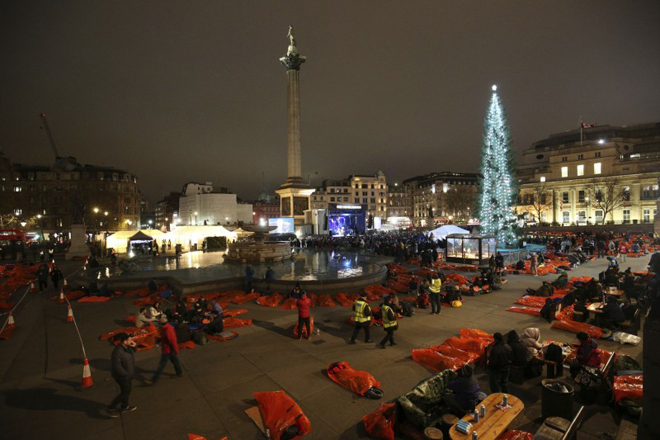 【綜合報導】昨天(7日)晚間,在各地城市,成千上萬的人在街頭露宿,作為全球集資以解決無家者問題,發起「世界大外宿」(World's Big Sleep Out)活動,人群聚集在倫敦、都柏林、紐約等逾50個大城市。據統計有超過5萬人在全球各地響應。