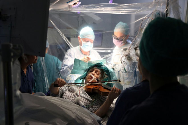 英國一名小提琴家在動腦部手術的同時一邊拉琴。