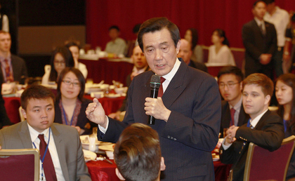 馬英九昨全程用英文致詞並與學者問答。一名女性學者在大信封袋寫上一個「悶」字,向馬展示,另一位外國學者提問說,過去幾天他和台灣民眾談話、與專家見面,發現大家有一種感覺,就是「悶」,馬總統覺得為什麼台灣人民心中會有這種感覺?要怎麼改變?